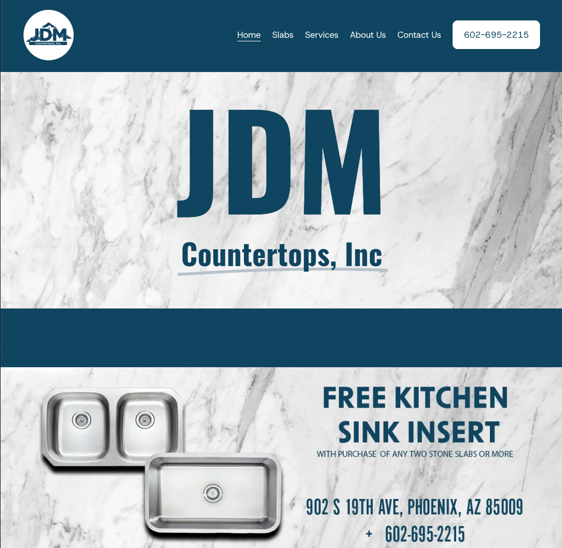 JDM Countertops needed a cleaner, more cohesive public-facing website to showcase materials and slabs while improving mobile usability and search visibility.